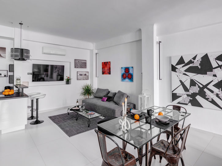 Ideally located in the heart of all the day and night life of Hermoupoli, the port of arrival and the main town of the island of Syros, the apartment overlooks a small pedestrian street from which emanates all the picturesque charm of the Cyclades.